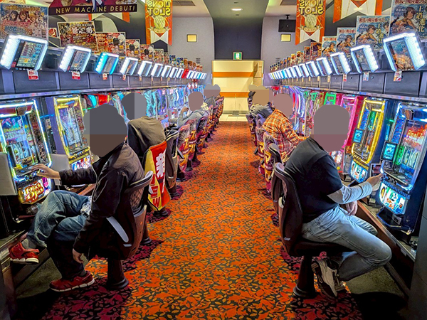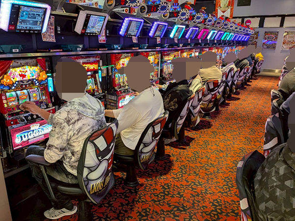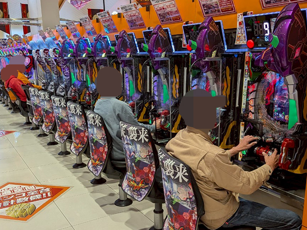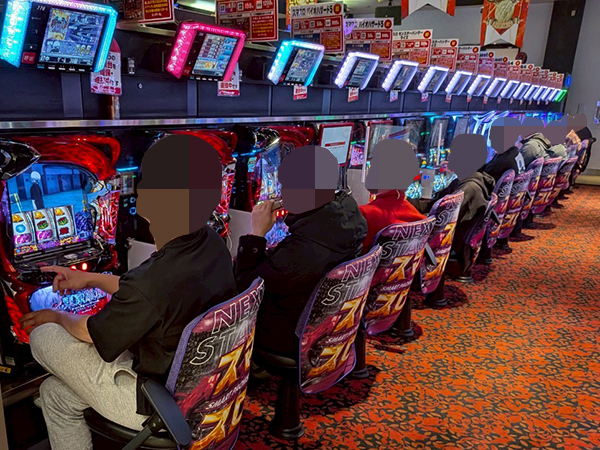 1000円/91枚・2.174円パチスロの稼働も高い。熱心にレバーを叩くプレイヤーの姿を複数目撃している。