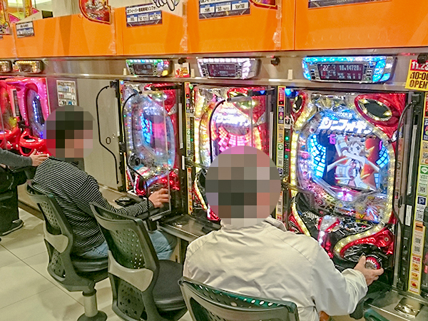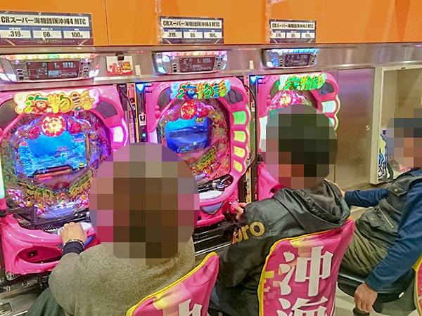 14時ごろの4円パチンコでは、「CRスーパー海物語IN沖縄4」や「CRフィーバー戦姫絶唱シンフォギア」などで好調なプレイヤーが見受けられ、時折見せる嬉しそうな表情が印象に残っている。