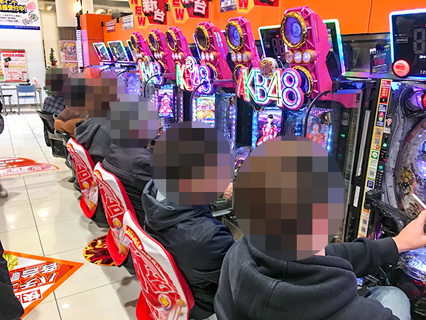 「CRぱちんこ AKB48-3 誇りの丘」や「CRフィーバーエルドラ」などでは好調なプレイヤーが目立ち、実に華やかな光景が広がっていた。