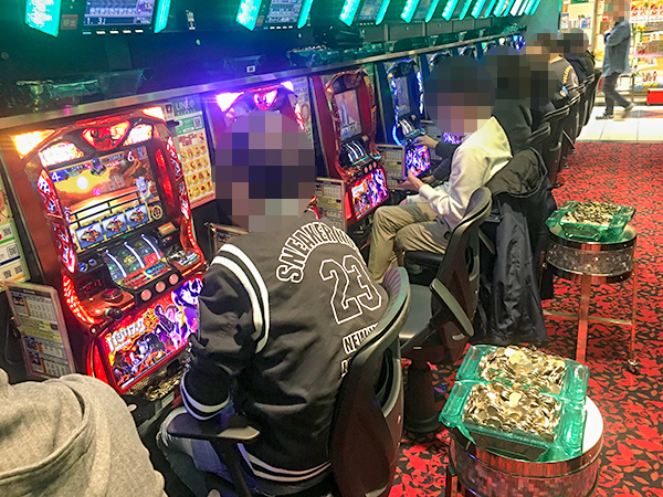 2円パチスロに目を移すと、至る所で楽しそうにレバーを叩くプレイヤーの姿が見られた。