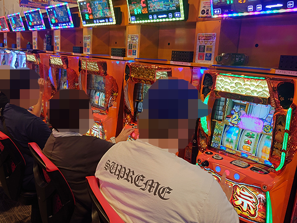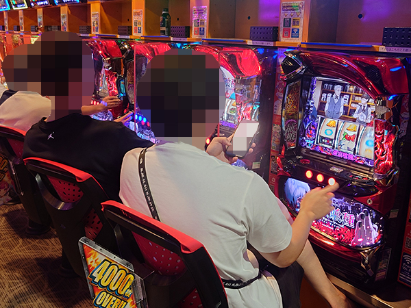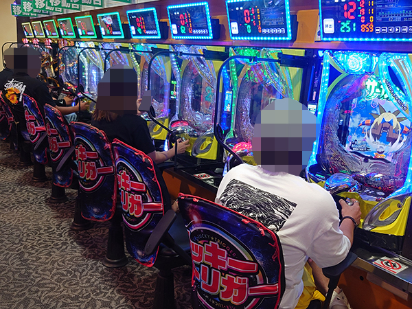 取材時は多くのプレイヤーが来店。パチンコ・パチスロともに、様々な機種が支持を得ていた。