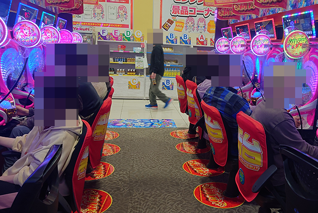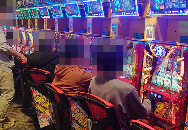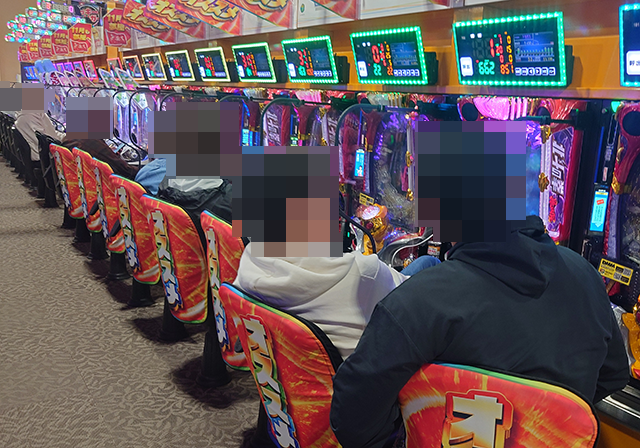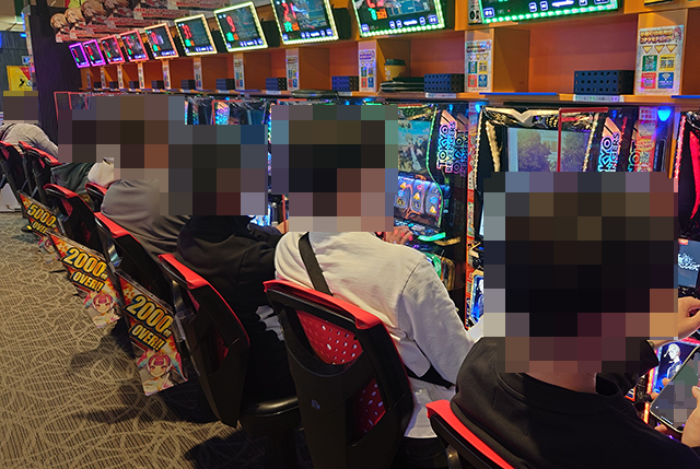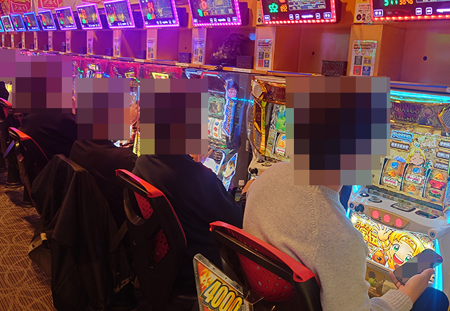 持ち玉で遊技をおこなっている姿が多く、いくつもの台に目をひかれた。