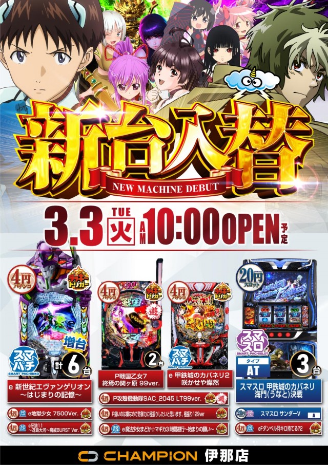 4円パチンコ 192台/ 1円パチンコ128台 / 20円スロット217台 |