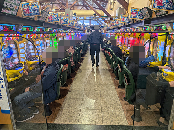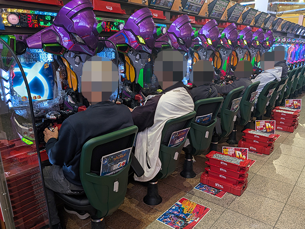 14時ごろの4円パチンコをチェックすると「P大海物語5」などの海物語シリーズや、「新世紀エヴァンゲリオン〜未来への咆哮〜」といったエヴァシリーズが盛況の様子。プレイヤーたちの満足気な表情が印象に残っている。