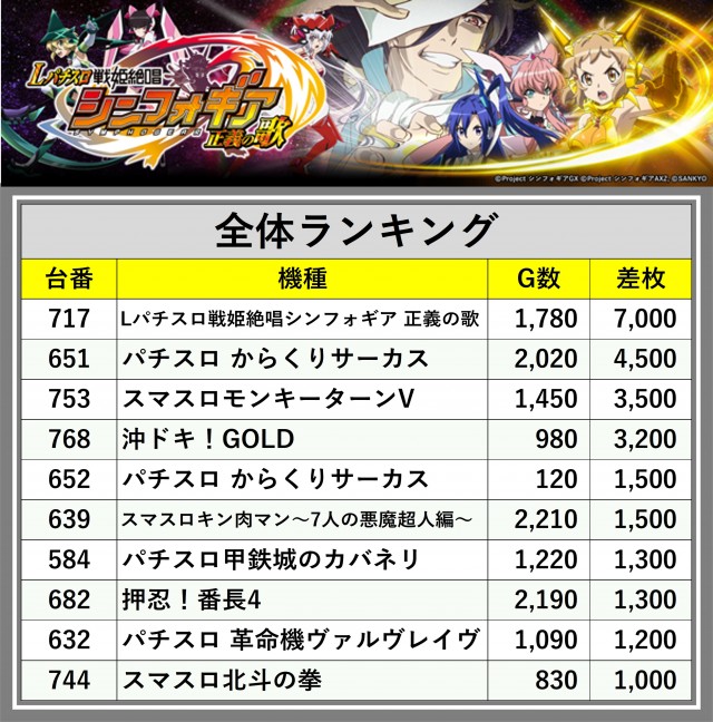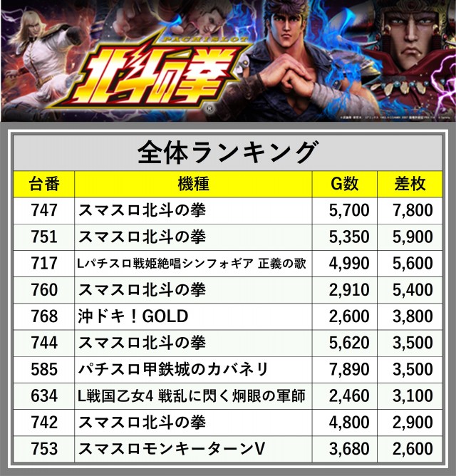 厳選された取材対象機種をはじめ、その他スロット全体から好記録が飛び出した!プレイヤーが楽しんだ1日を下記データにて振り返ってみて欲しい。