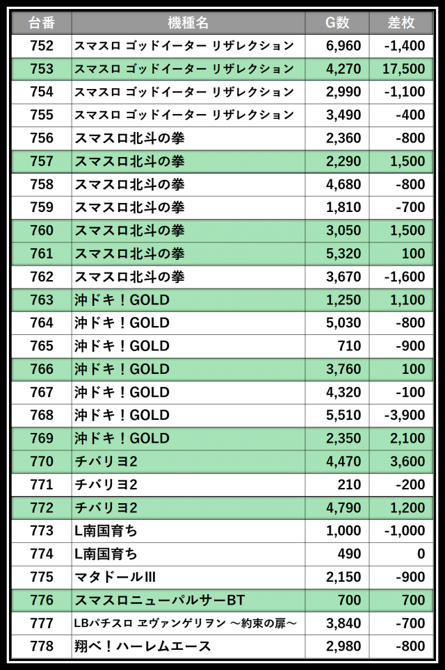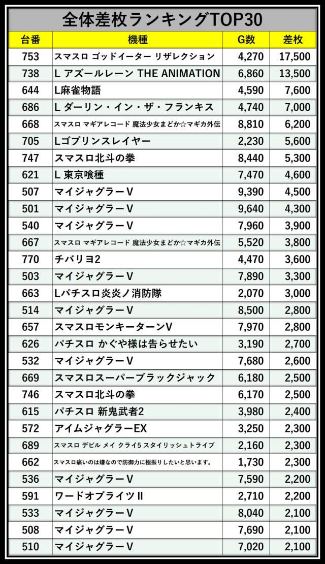 その結果の中から、ぱちタウンが注目すべきポイントを厳選してユーザーにお届け!プレイヤーが楽しんだ一日を下記データにて振り返ってみて欲しい。