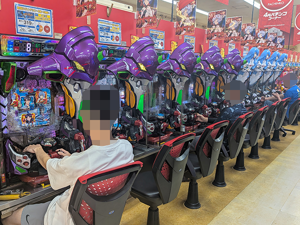 14時ごろの4円パチンコでは、「eフィーバーブルーロック」や「新世紀エヴァンゲリオン〜未来への咆哮〜」などでプレイヤーが華麗なパフォーマンスを披露。微笑ましいシーンを随所で目にしている。