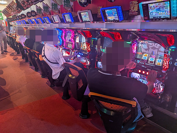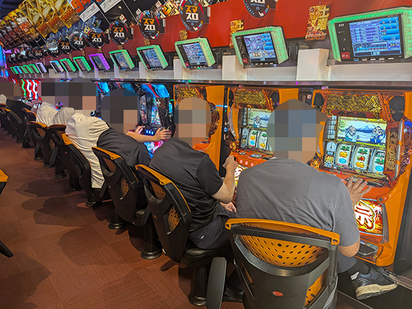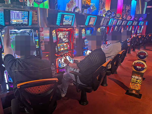 取材時は既に多くのプレイヤーであふれており、パチンコ・パチスロを問わず楽しげな表情でいっぱいだった。