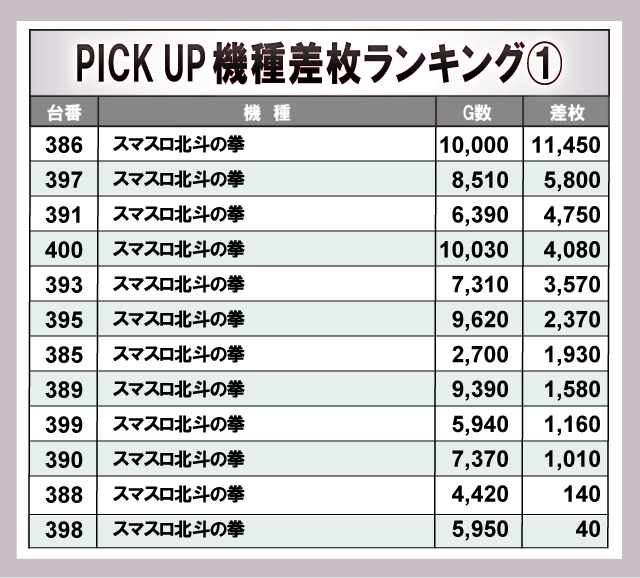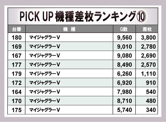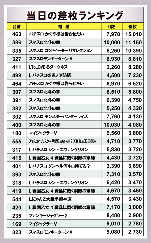 ※差枚数順に掲載しています。