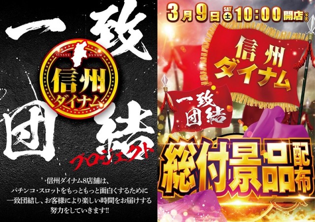 明日3/9(土) 信州ダイナム 一致団結★総付景品配布★