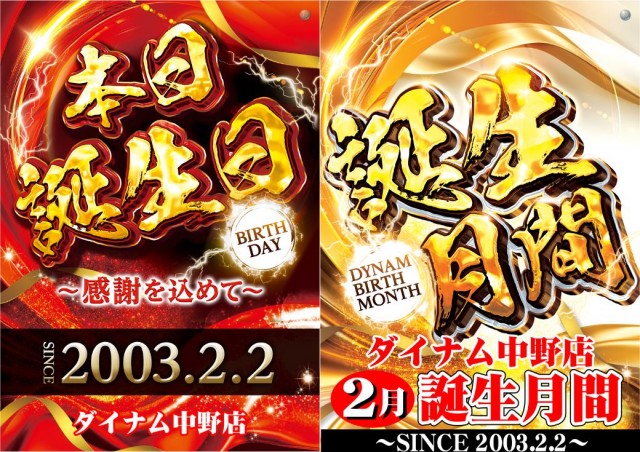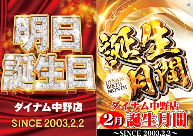 本日2/2(金)中野店誕生日~ご来店お待ちしております!