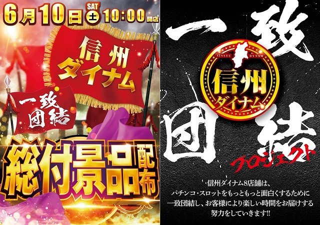 明日6/10(土)信州ダイナム全店一斉総付景品配布!