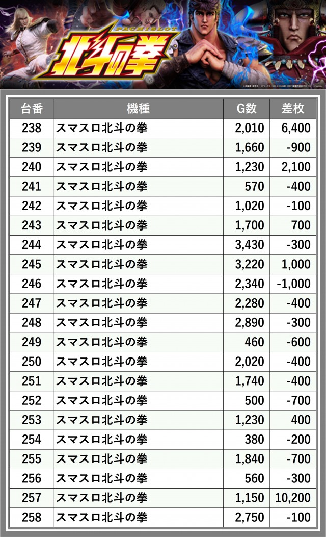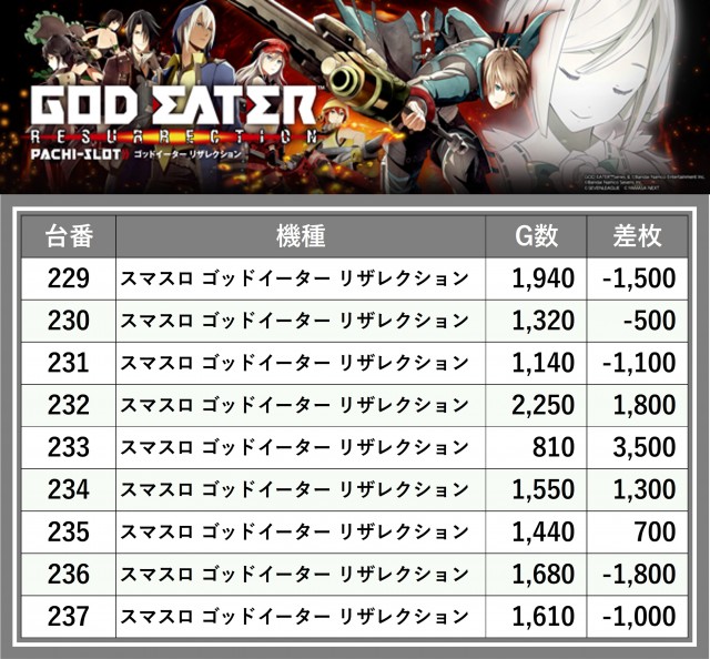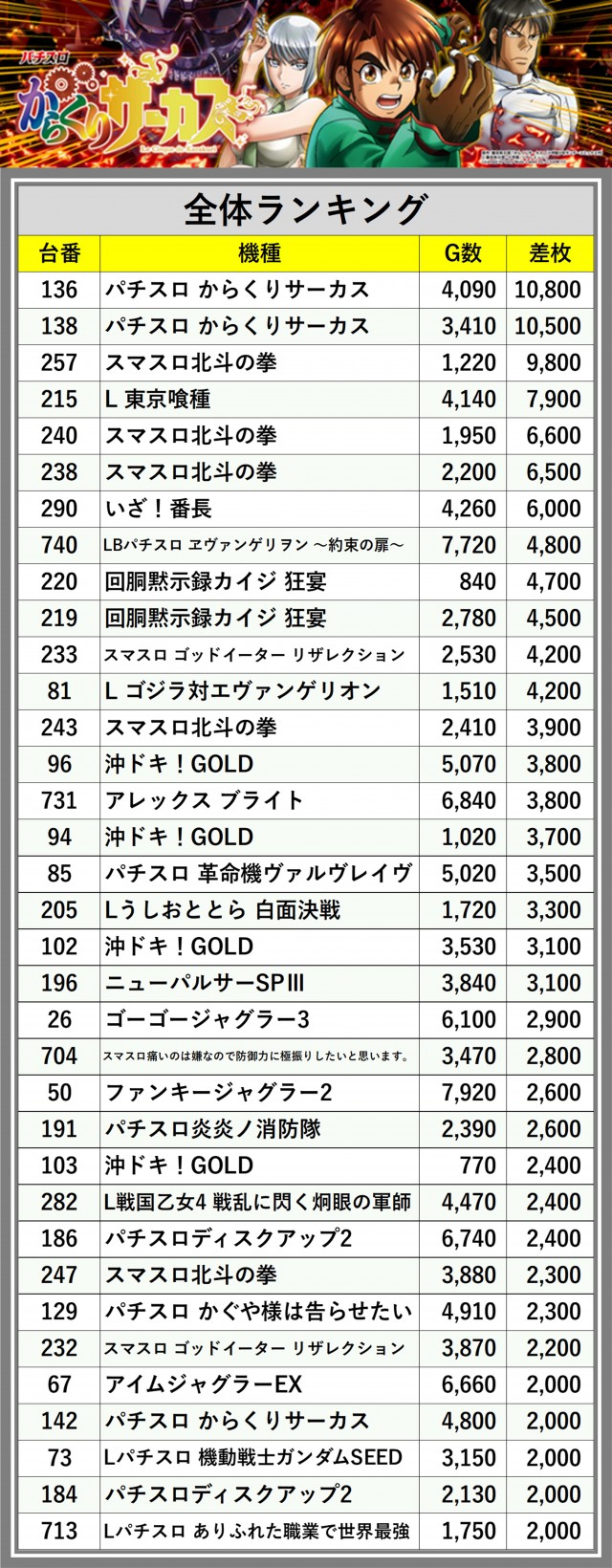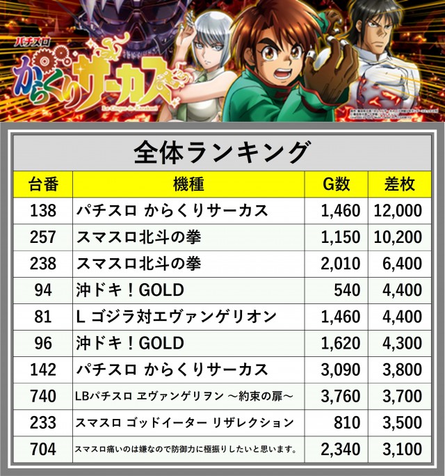 厳選された取材対象機種をはじめ、その他スロット全体から好記録が飛び出した!プレイヤーが楽しんだ1日を下記データにて振り返ってみて欲しい。