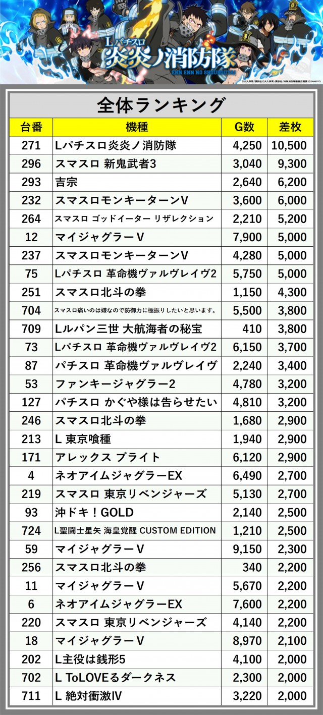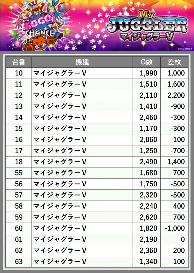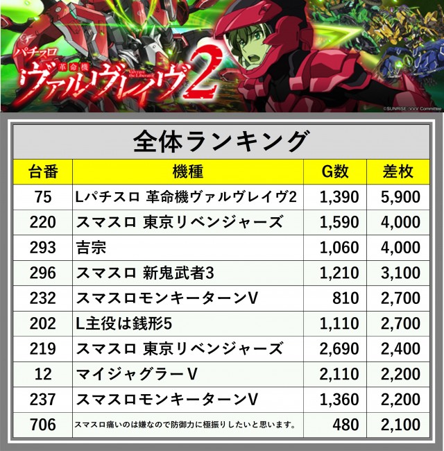 厳選された取材対象機種をはじめ、その他スロット全体から好記録が飛び出した!プレイヤーが楽しんだ1日を下記データにて振り返ってみて欲しい。