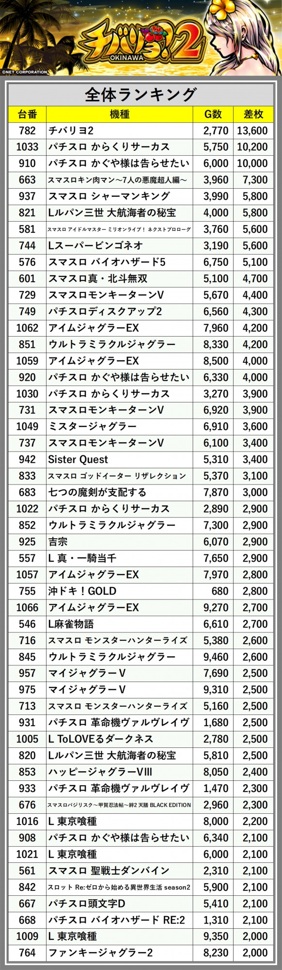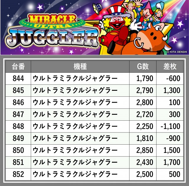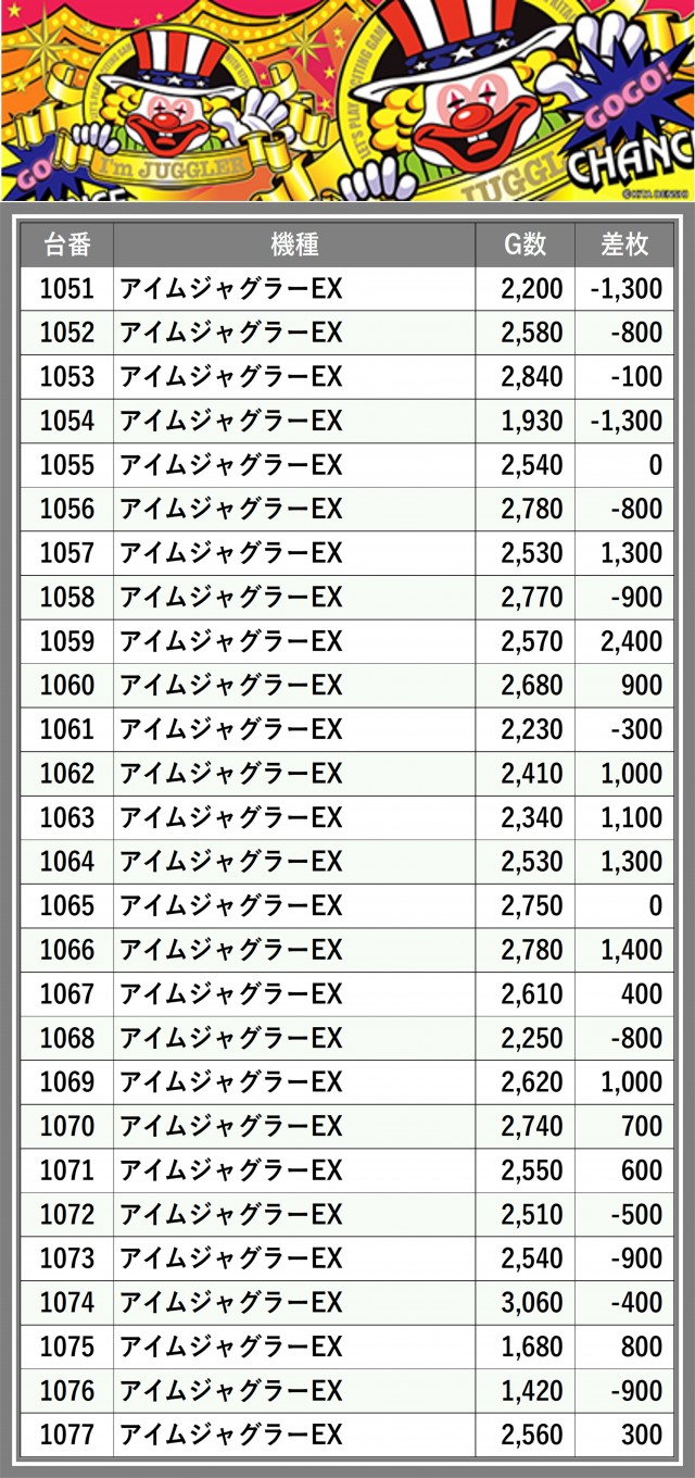 厳選された取材対象機種をはじめ、その他スロット全体から好記録が飛び出した!プレイヤーが楽しんだ1日を下記データにて振り返ってみて欲しい。