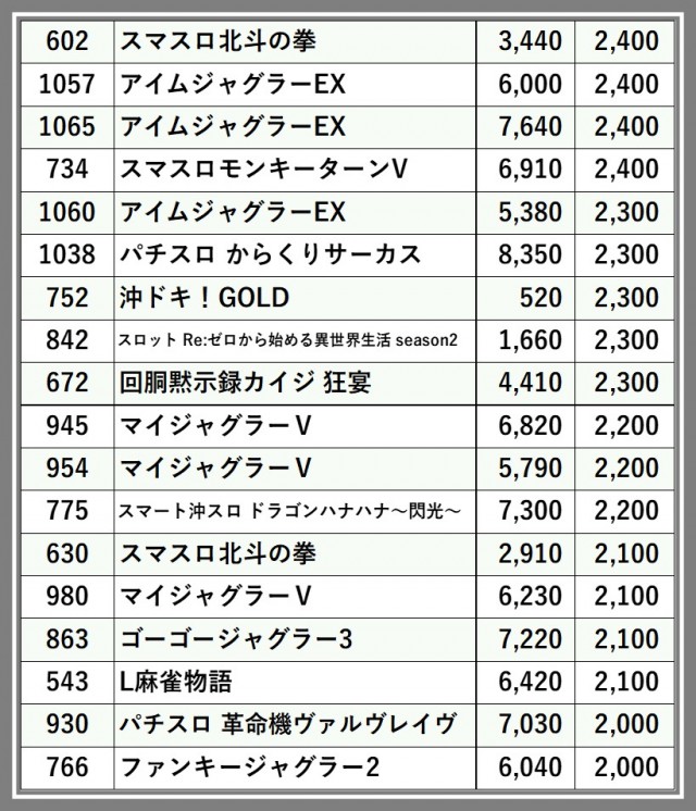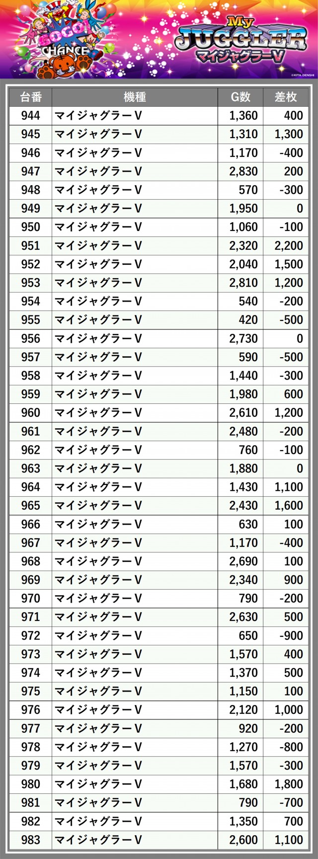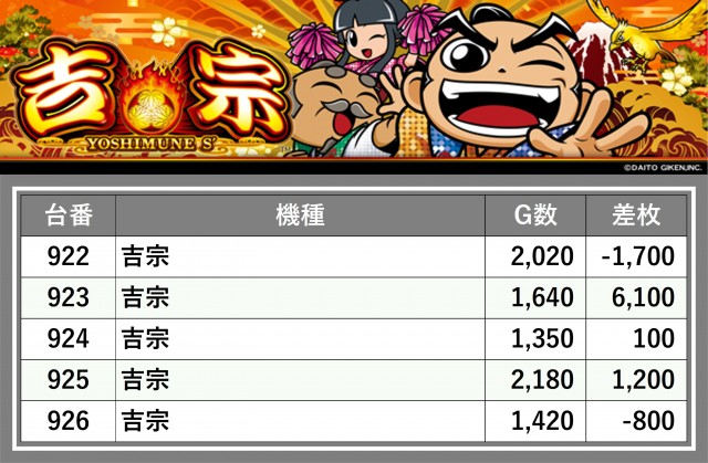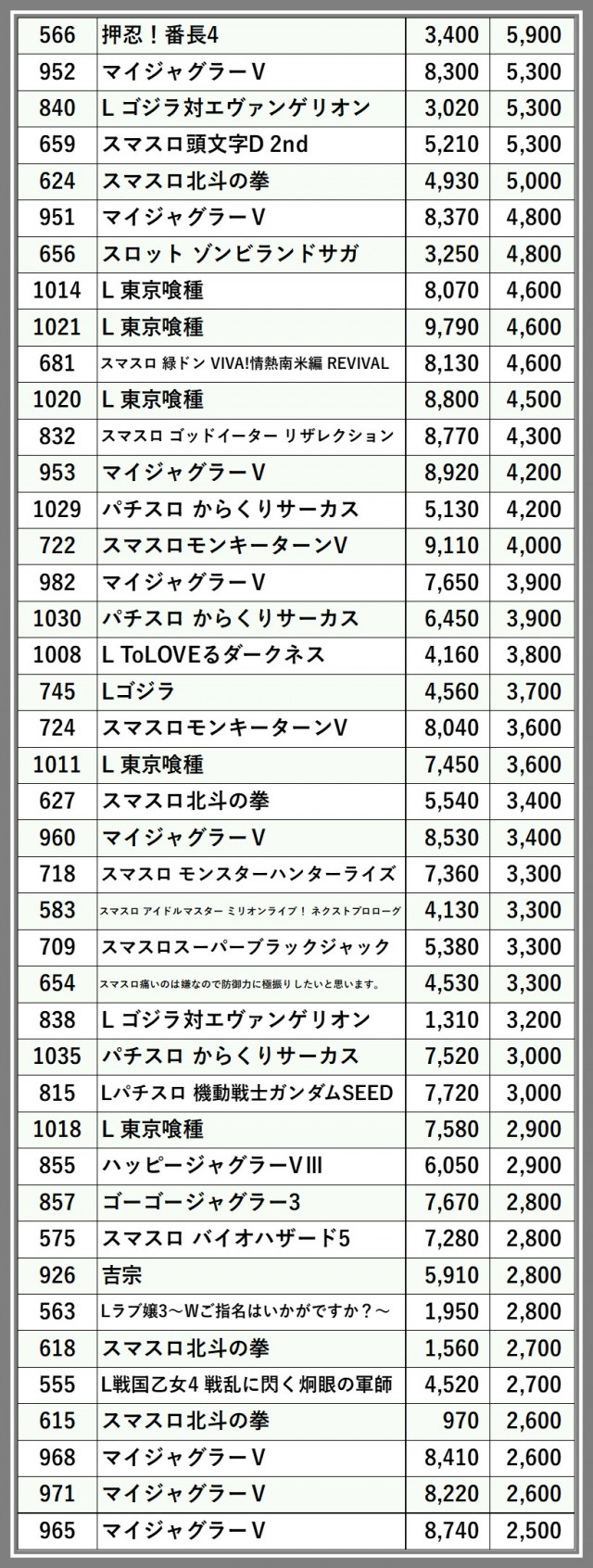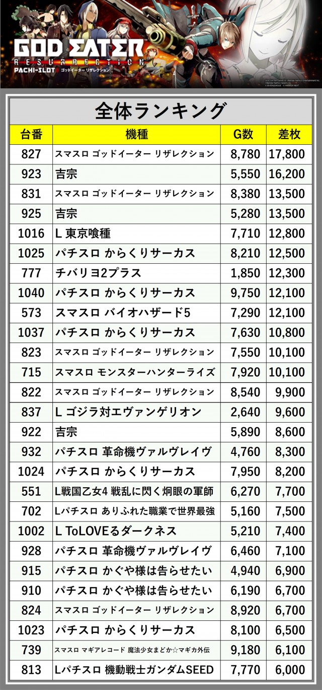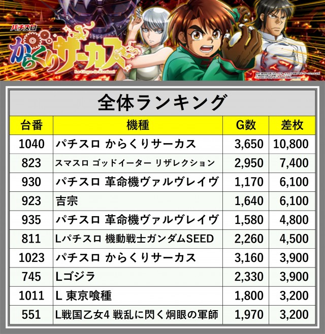 厳選された取材対象機種をはじめ、その他スロット全体から好記録が飛び出した!プレイヤーが楽しんだ1日を下記データにて振り返ってみて欲しい。