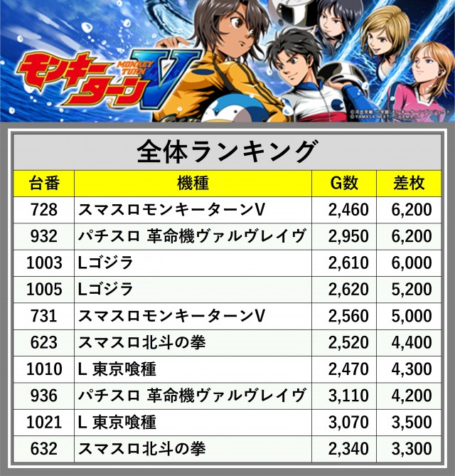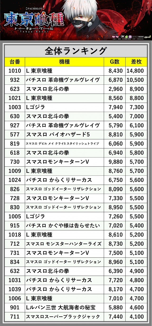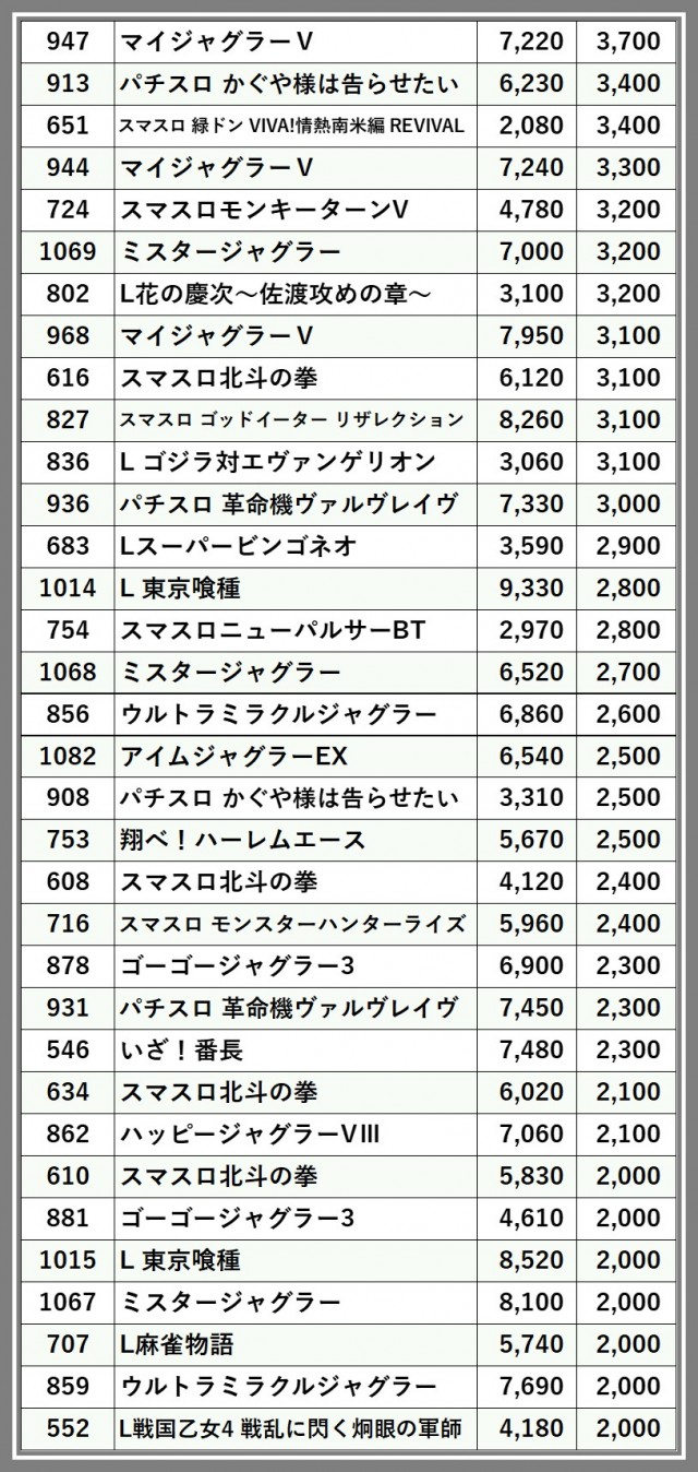 厳選された取材対象機種をはじめ、その他スロット全体から好記録が飛び出した!プレイヤーが楽しんだ1日を下記データにて振り返ってみて欲しい。