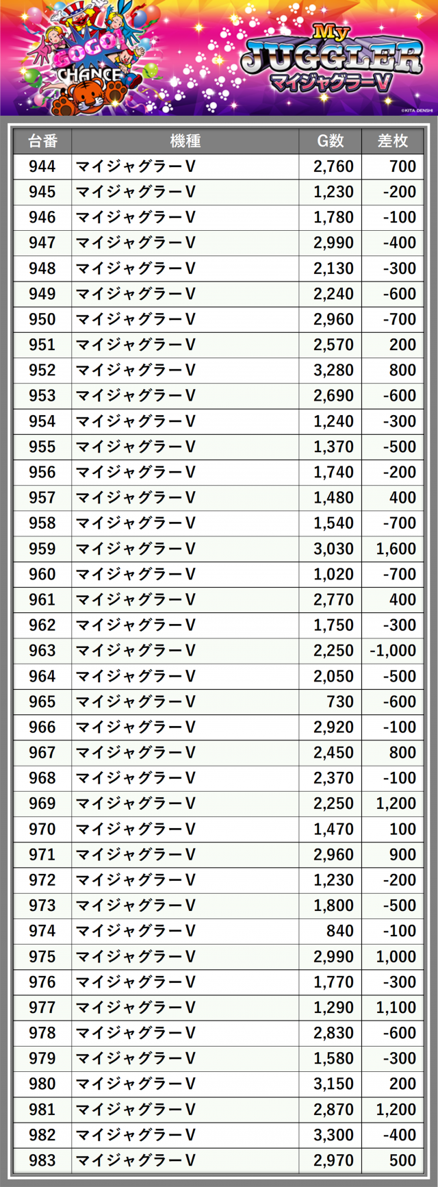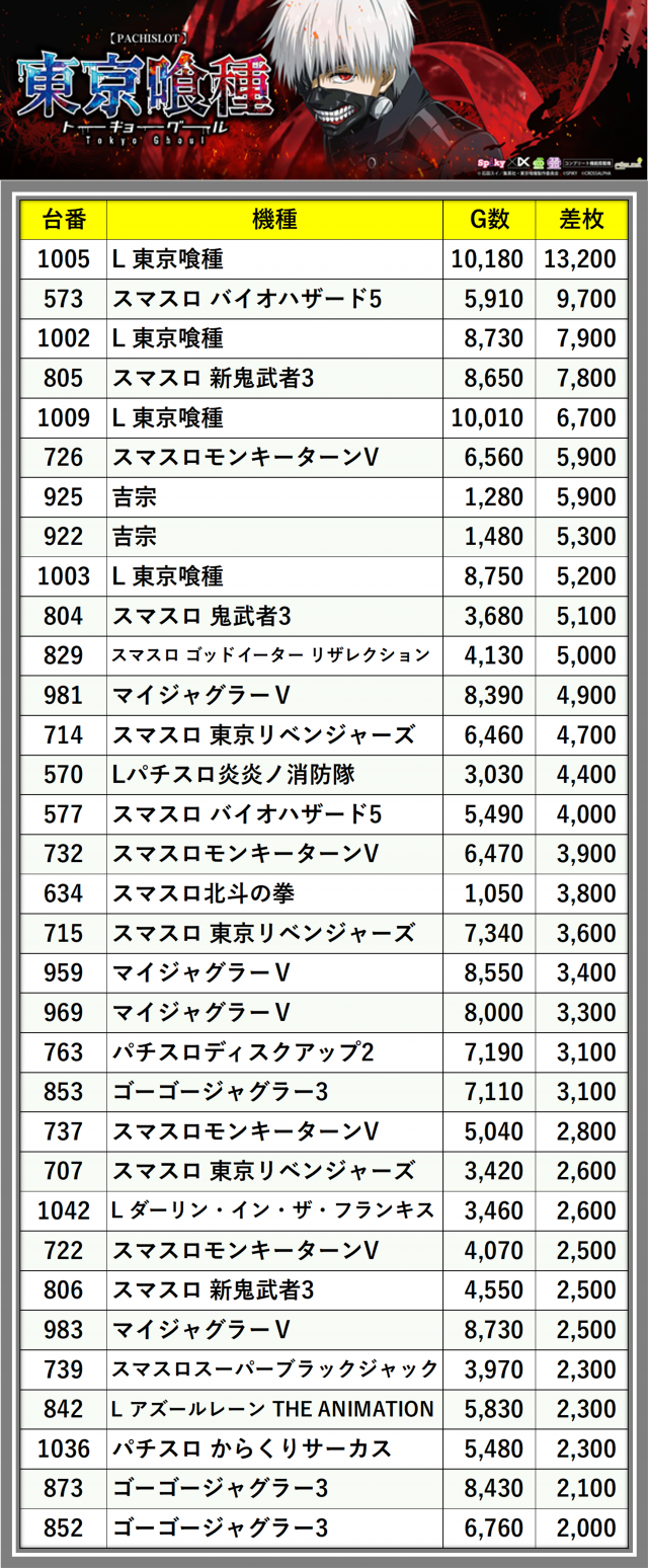 厳選された取材対象機種をはじめ、その他スロット全体から好記録が飛び出した!プレイヤーが楽しんだ1日を下記データにて振り返ってみて欲しい。
