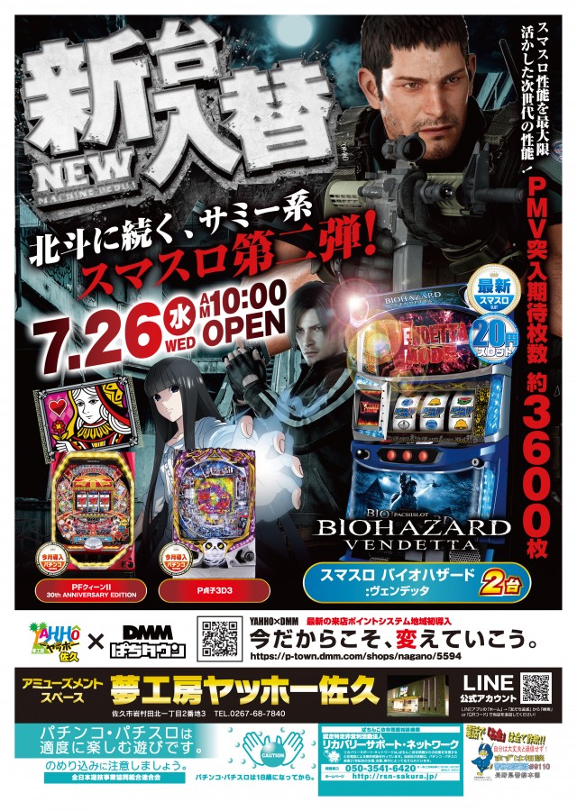 年中無休(新台入替時はお休みを頂く場合がございます。) |