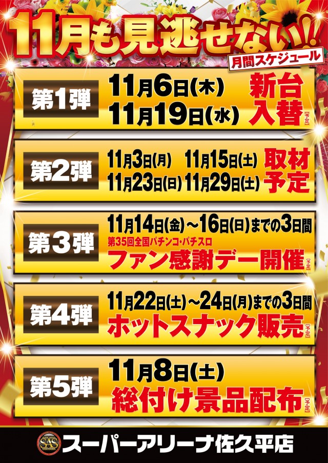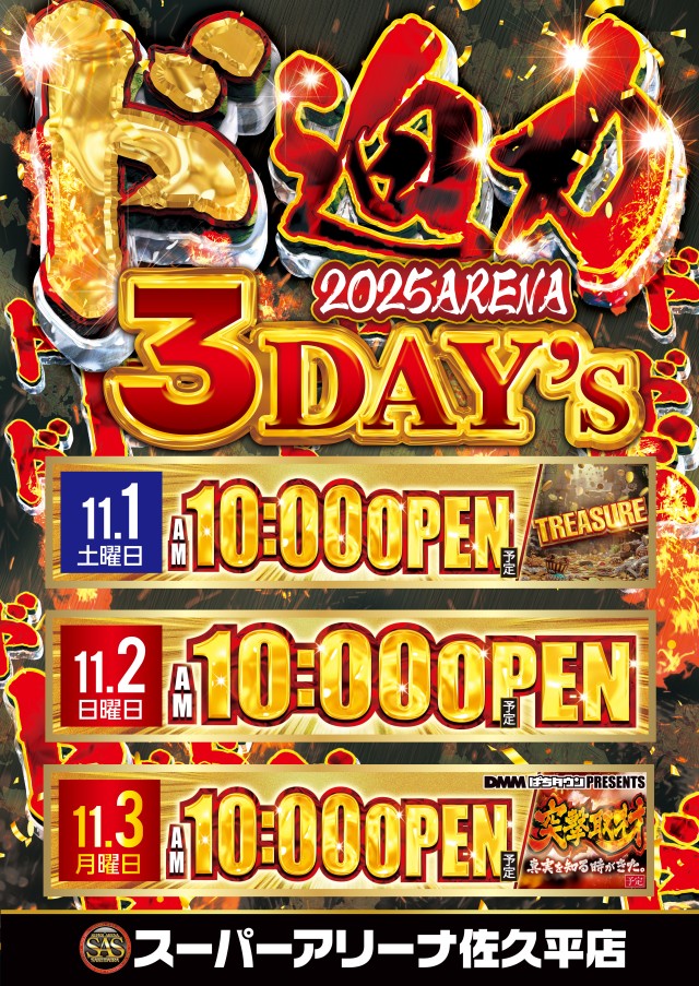 2025/10/31🔥明日も全館10:00 OPEN🔥 9:30抽選開始!明日 11月1日 土曜日 11月START! 9時30分抽選開始 10 時 開 店 明日も皆さまのご来店をお待ちしております