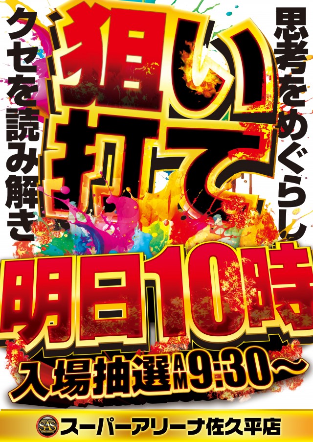 2025/10/28🔥明日も全館10:00 OPEN🔥 9:30抽選開始!明日 10月29日 水曜日 9時30分抽選開始 10 時 開 店 明日も皆さまのご来店をお待ちしております