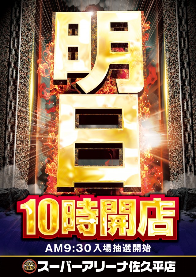 明日!新台OPEN初日!!9時30分抽選開始!10時開店!!