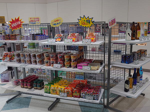 景品コーナーには日用品・インスタント食品・酒類など多彩なアイテムが揃っており、プレイヤーたちの目を引いていた。