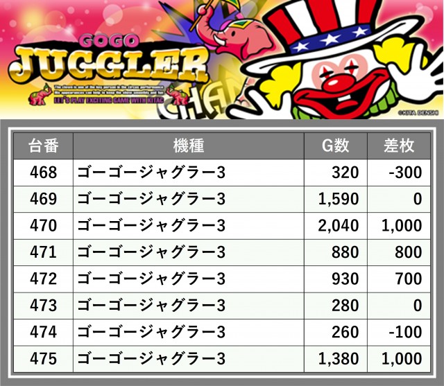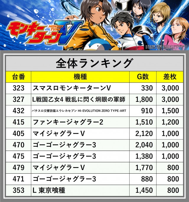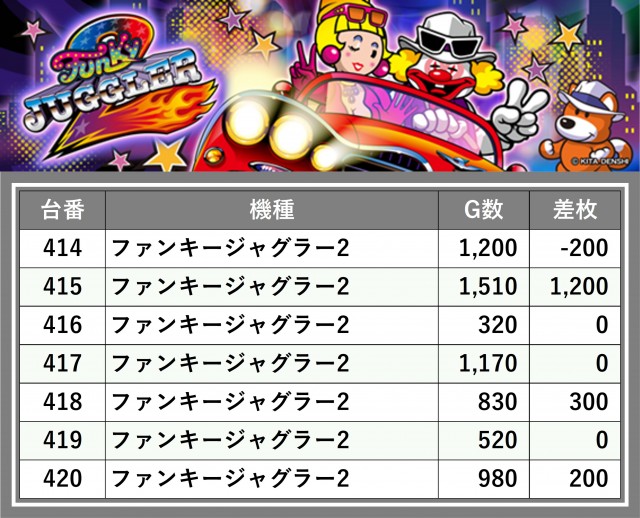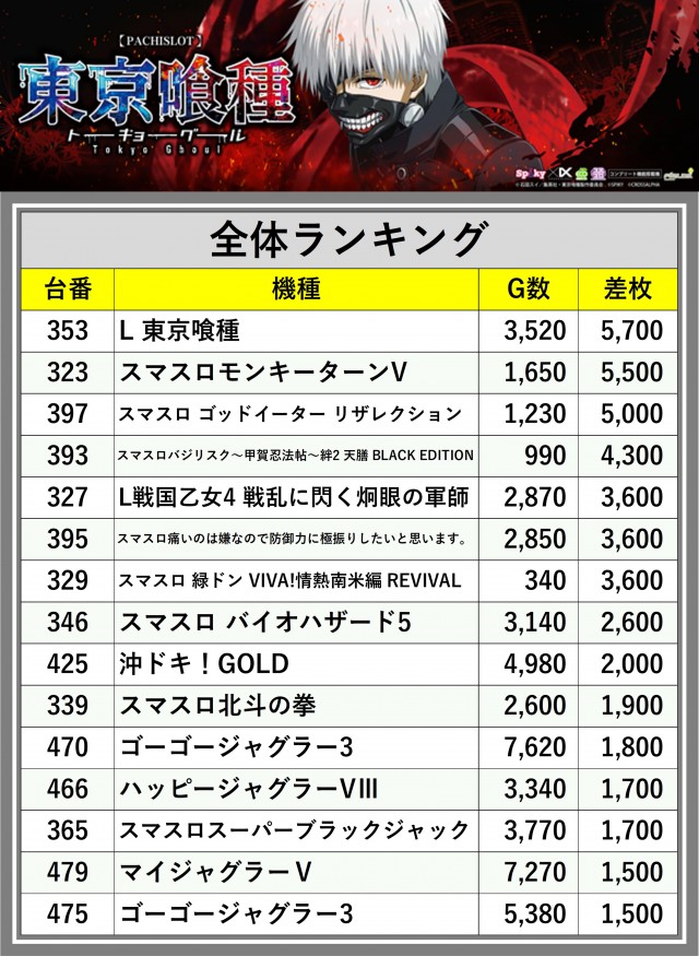 厳選された取材対象機種をはじめ、その他スロット全体から好記録が飛び出した!プレイヤーが楽しんだ1日を下記データにて振り返ってみて欲しい。