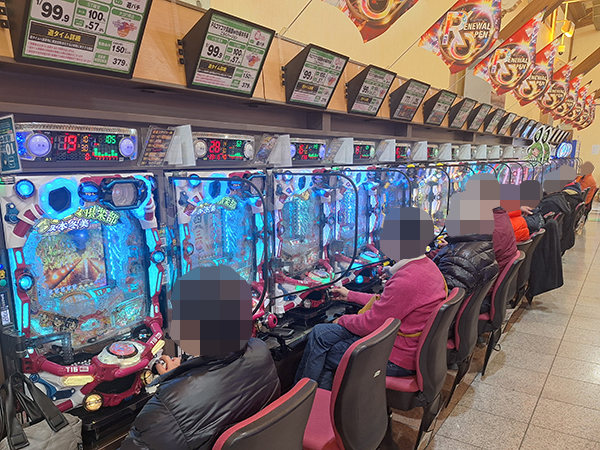 15時半ごろの1.087円パチンコを見てみると、「PAスーパー海物語 IN 沖縄5 夜桜超旋風 99ver.」や「PA大海物語5 Withアグネス・ラム」などの甘海シリーズが高稼働。プレイヤーの満足げな表情を多数確認している。