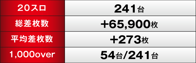 総差枚数+65,900枚、+1,000オーバー54/241台という素晴らしい結果で終了した今回の「VEPPAN」。前回のマイナスを見事に払拭し、大勝利を収めた同店だが、とくに「沖ドキ!GOLD」などの人気機種にチカラを入れていた傾向が見てとれたので、次回以降はそれらの点に注目して立ち回ることをオススメするぞ! 次回以降に期待できる好結果となったので、今後もぜひチェックしてほしい!