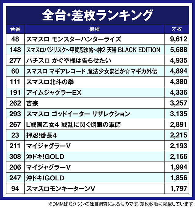 ※なお、本記事中のデータは全てDMMぱちタウンの独自調査によるものです