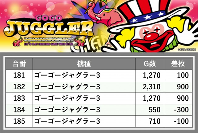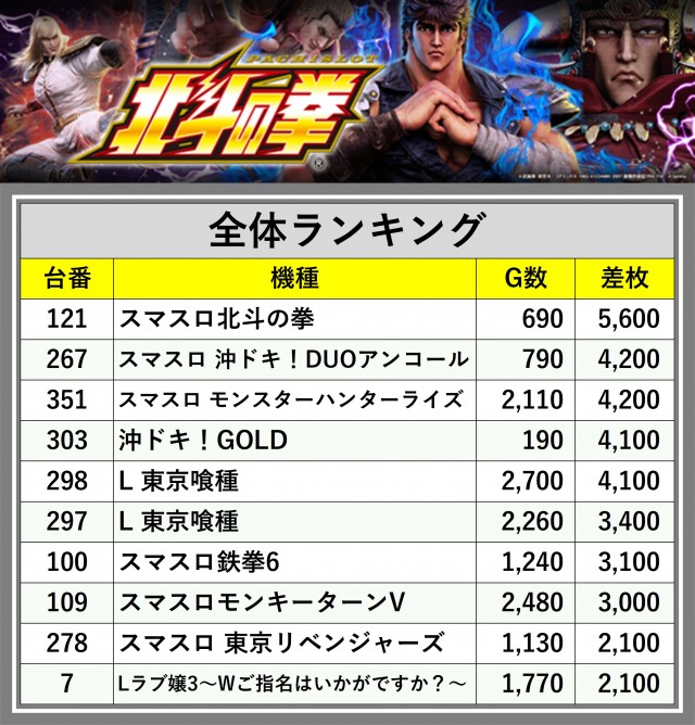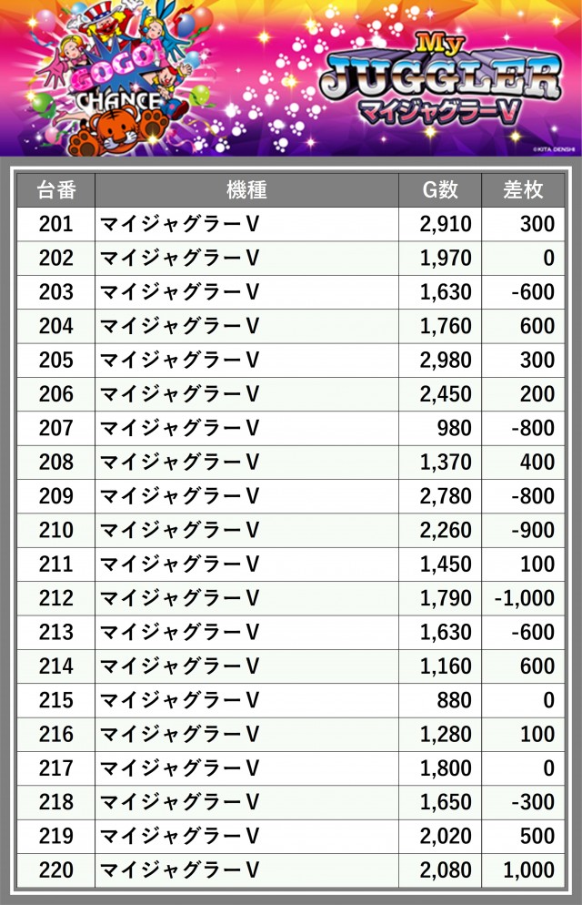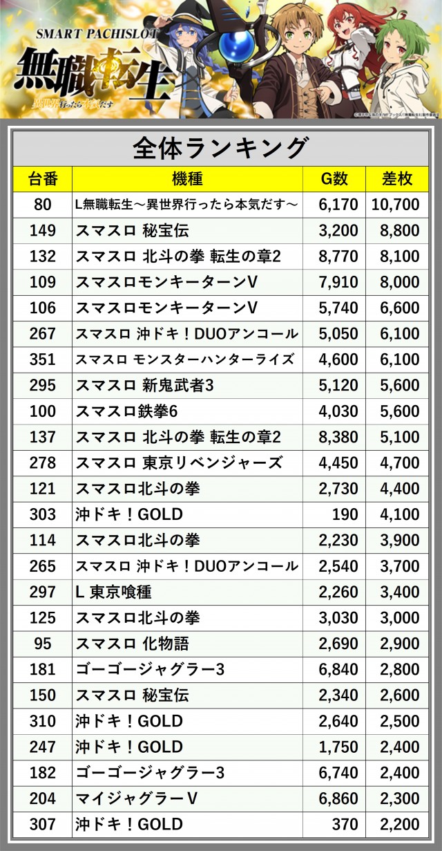 厳選された取材対象機種をはじめ、その他スロット全体から好記録が飛び出した!プレイヤーが楽しんだ1日を下記データにて振り返ってみて欲しい。