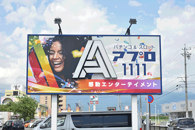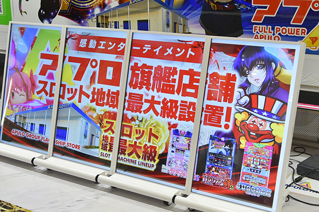 アプログループの旗艦店にして、地域最大級のパチスロ設置を誇っている。