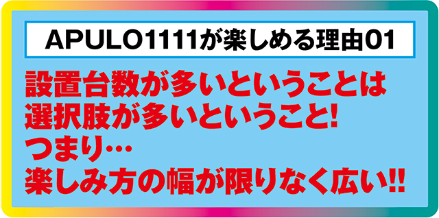 これぞ我々がAPULO1111をモーレツに推す理由であり、多くのプレイヤーがリピーターと化している理由である。