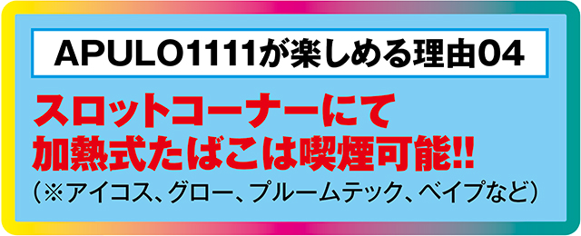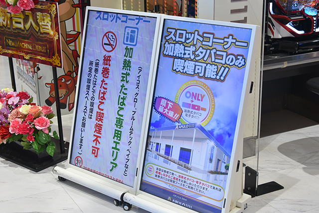 地味に嬉しいのがパチスロコーナーにて、加熱式たばこ・電子たばこを吸うことができるようになったこと。