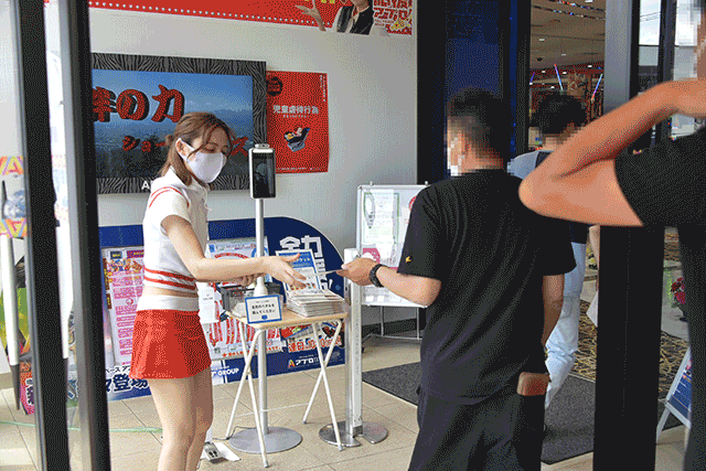 店内入口での検温&アルコール消毒、