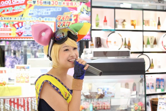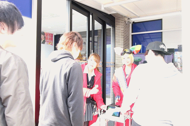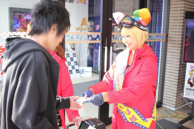 長野を中心に活動するご当地アイドルでもある彼女の手から抽選結果を受け取るファンはちょっと照れくさそうだ(微笑)