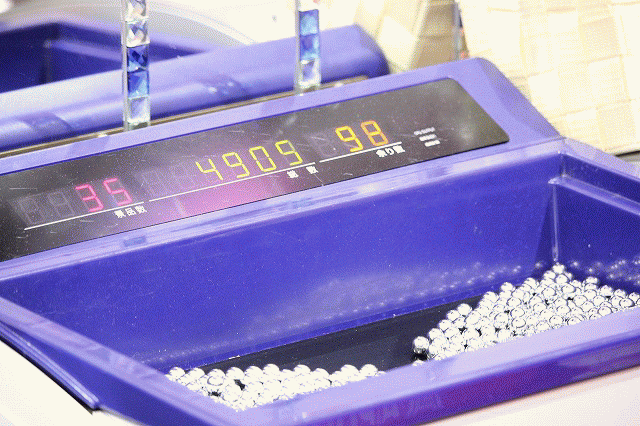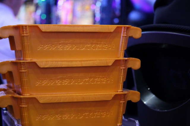 さて、次いで満席となったのは『沖海4』。パチスロコーナーの偵察を終える頃には、すでに後ろに積まれ始めた玉箱がチラホラ。