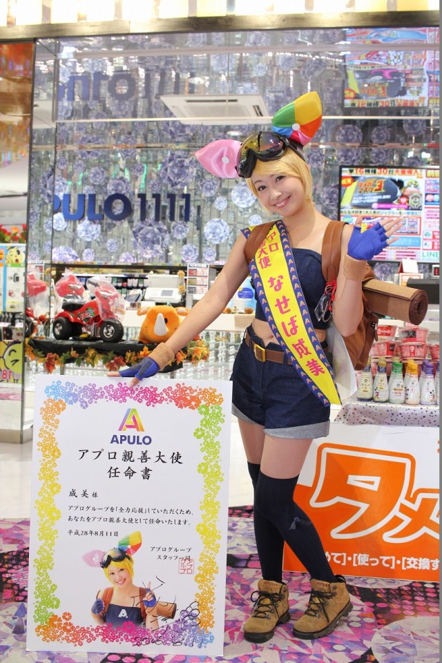 ちなみに、成美さんが扮するは《APULO》グループのマスコットキャラである「アプロちゃん」。