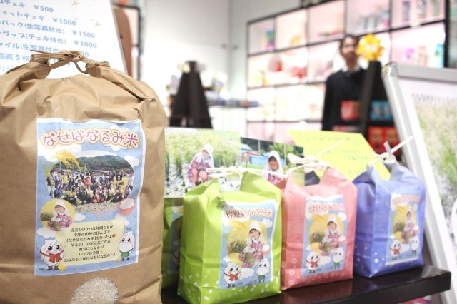 | なるみ米は成美さんお手製のブランド米。地元・長野の栄養豊富な水と土で精一杯育てたそうな。来店していたファンも購入し、満面の笑顔で抱えてお持ち帰り! | |