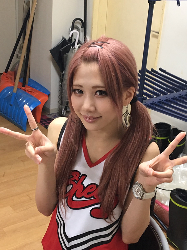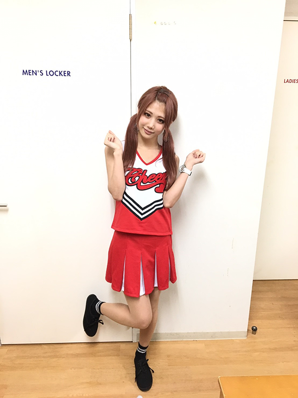 じゃんっ♪ チアガール風コスチュームにお着替え完了!