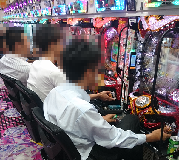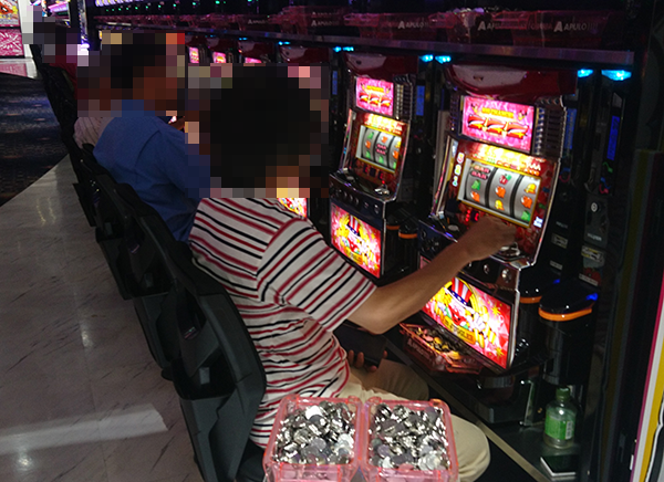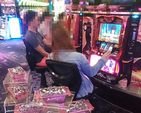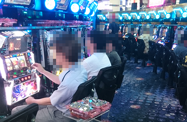 夕方頃の20円パチスロにおいて、とくに活気づいていたのが「バジリスク~甲賀忍法帖~絆」。シマ内に広がる鮮やかな光景が、満足度の高さをあらわしているようであった。