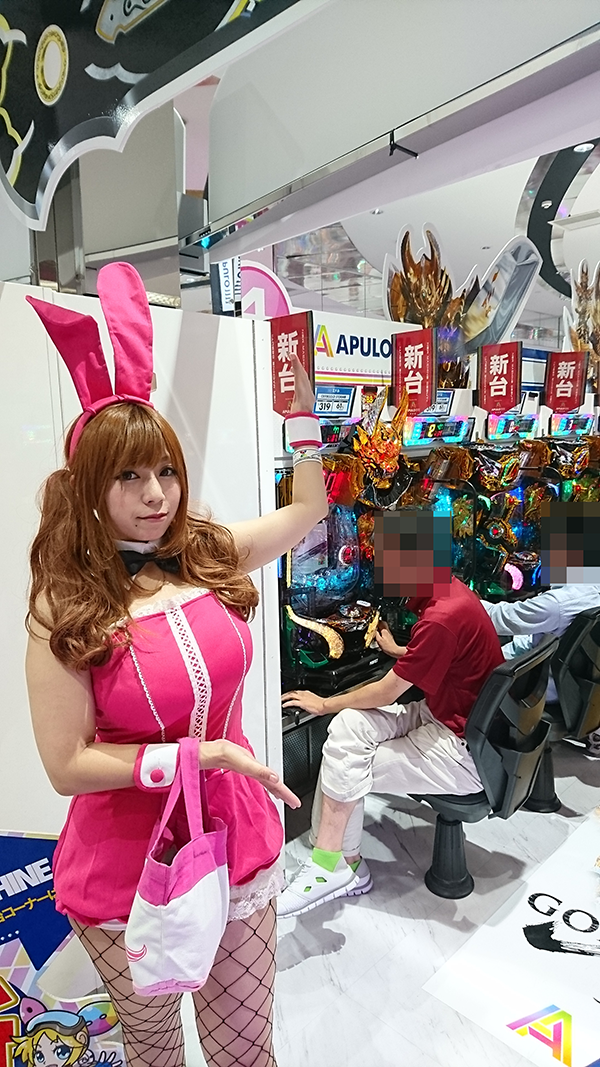 パチスロコーナーでは、アンジュちゃんの実戦しているジャグラーシリーズが大にぎわい! 「バジリスク~甲賀忍法帖~絆」や「押忍!番長3」などからも活気が感じられ、満足感を得ているといった姿もたくさんみかけました~☆
