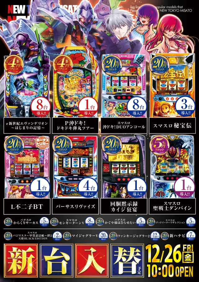明日【20円スロット増台】&【新台入替】 9:30抽選開始!