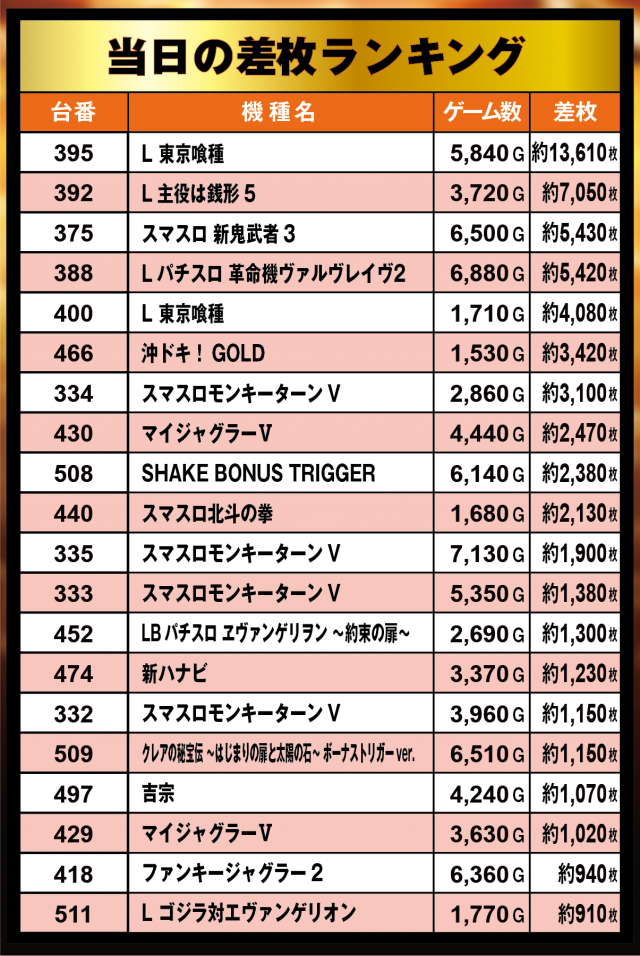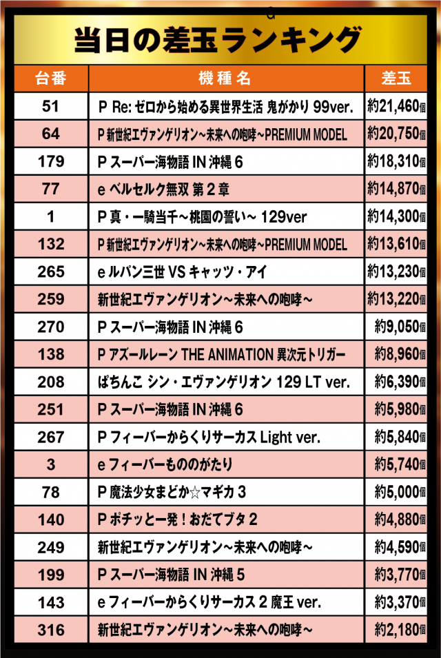 当日のパチンコランキングも必見!