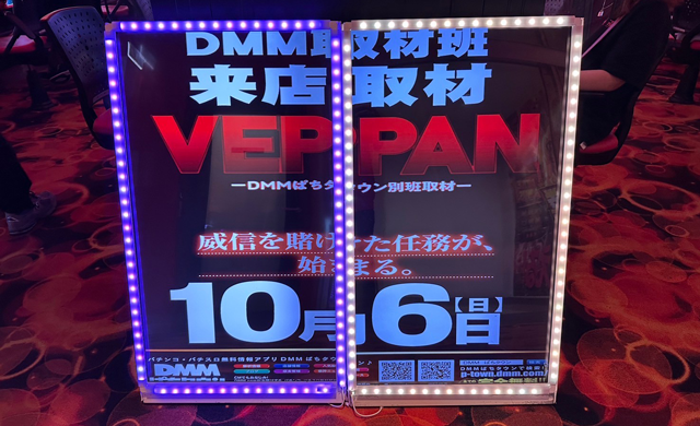 DMMぱちタウン取材班〝別班〟が威信を賭けて執り行う「VEPPAN」が、10月6日に「ニューアサヒ箕輪店」にて実施された。取材時は多くのファンたちが集まりスロットコーナーは大盛況で、至るところに良台を多数確認。果たしてどれほどの盛り上がりを見せていたのか、ここからはスロット全301台の詳細とともに、当日の店内の盛り上がりをチェックしていこう!