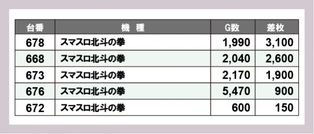 ※差枚数順に掲載しています