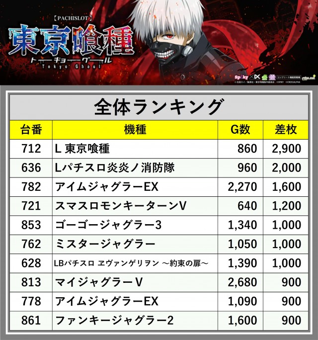 厳選された取材対象機種をはじめ、その他スロット全体から好記録が飛び出した!プレイヤーが楽しんだ1日を下記データにて振り返ってみて欲しい。