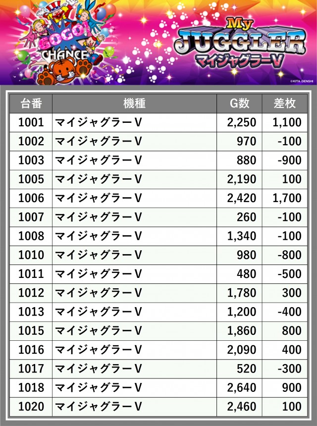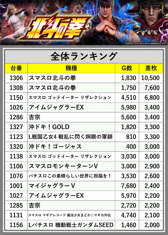 ※差枚数順に掲載しています