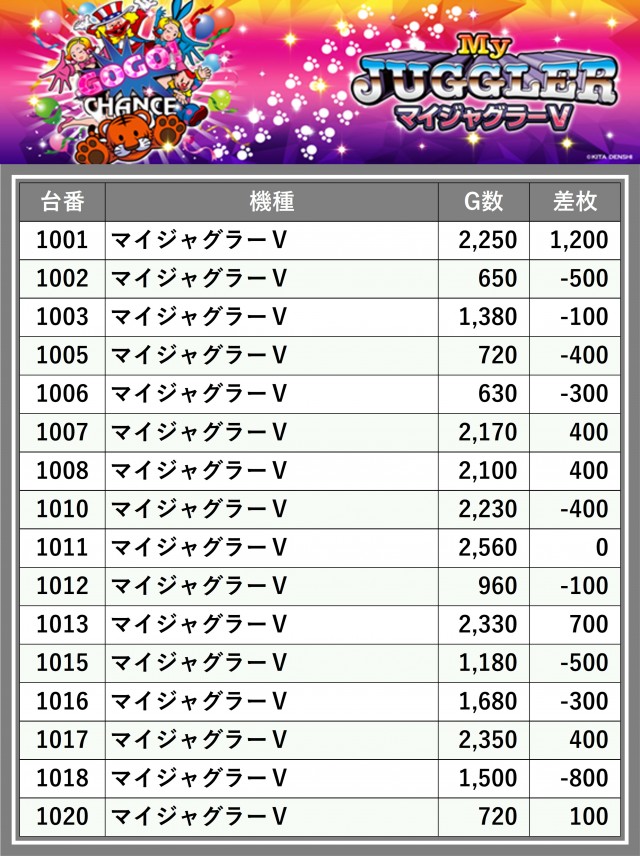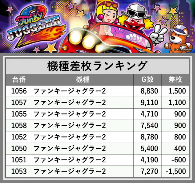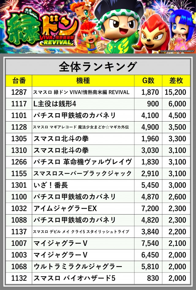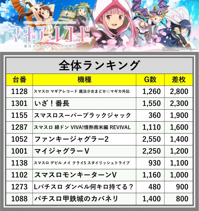 厳選された取材対象機種をはじめ、その他スロット全体から好記録が飛び出した!プレイヤーが楽しんだ1日を下記データにて振り返ってみて欲しい。